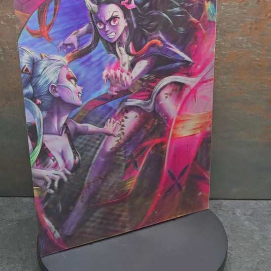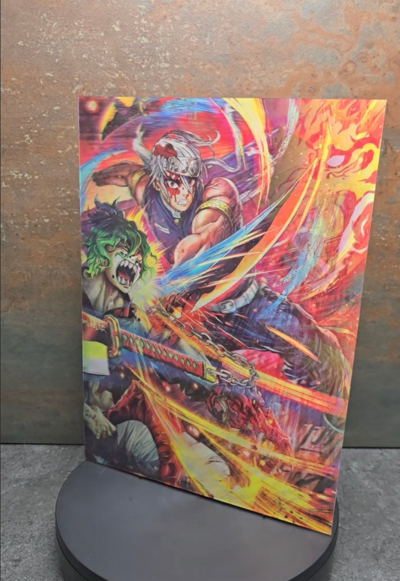 Dieses einzigartige 3D Lentikularbild zeigt drei der beliebtesten Demon Slayer (Kimetsu no Yaiba) Charaktere in spektakulären Action-Szenen: