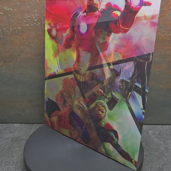 Dieses einzigartige 3D Lentikularbild vereint die größten Superhelden aus dem DC und Marvel Universum in 3 verschiedenen spektakulären Montagen: