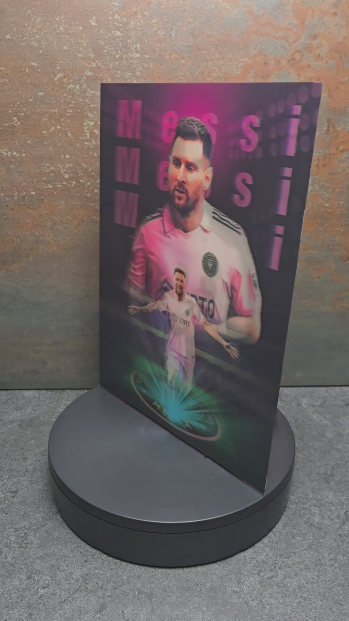 Dieses einzigartige 3D Lentikularbild zeigt die Fußball-Legende Lionel Messi im ikonischen pinken Inter Miami CF Trikot in 3 verschiedenen Posen. Je nach Blickwinkel wechselt das Motiv - ein faszinierender Effekt, der jeden Messi-Fan begeistert!