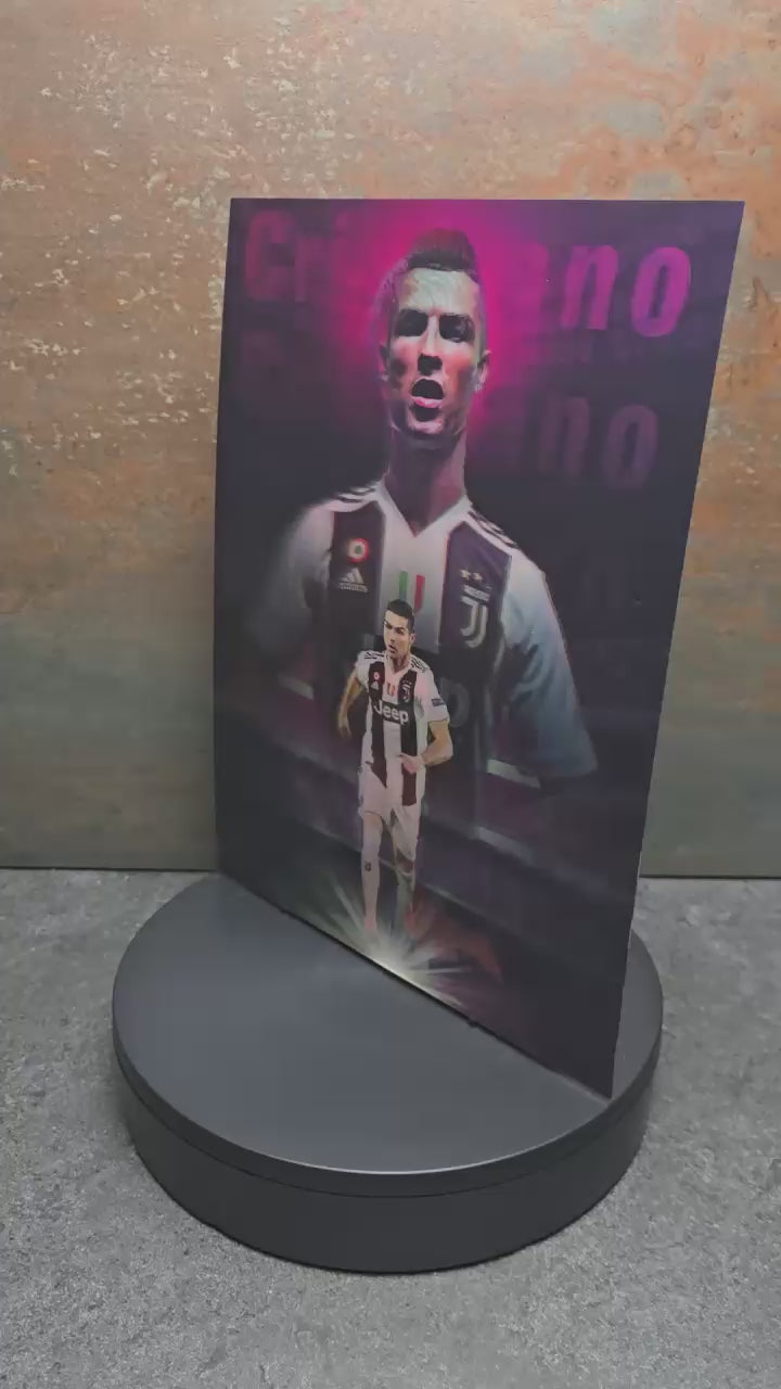 Dieses einzigartige 3D Lentikularbild zeigt die Fußball-Legende Cristiano Ronaldo im legendären weißen Real Madrid Trikot in 3 verschiedenen Posen. Je nach Blickwinkel wechselt das Motiv - ein faszinierender Effekt, der jeden CR7-Fan begeistert!