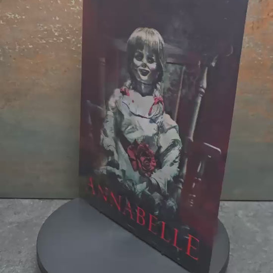 Dieses einzigartige 3D Lentikularbild zeigt die Horror-Ikone Annabelle aus The Conjuring in 3 verschiedenen gruseligen Szenen. Je nach Blickwinkel wechselt das Motiv - ein faszinierender Effekt, der jeden Horror-Fan begeistert!