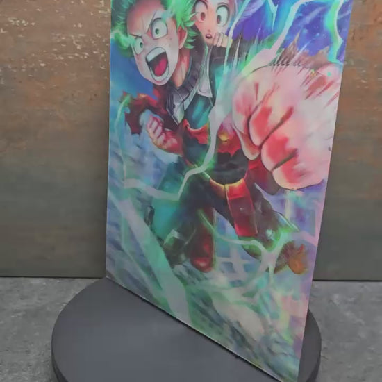 Dieses einzigartige 3D Lentikularbild zeigt drei der beliebtesten My Hero Academia Helden in spektakulären Action-Szenen: